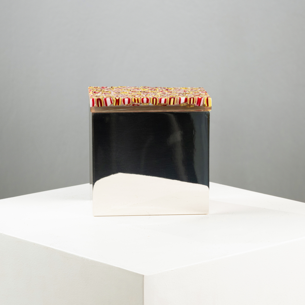 Couvert fait en verre Studio Venini des années 50, corps de la boîte en argent 925 gr. 850 Signée