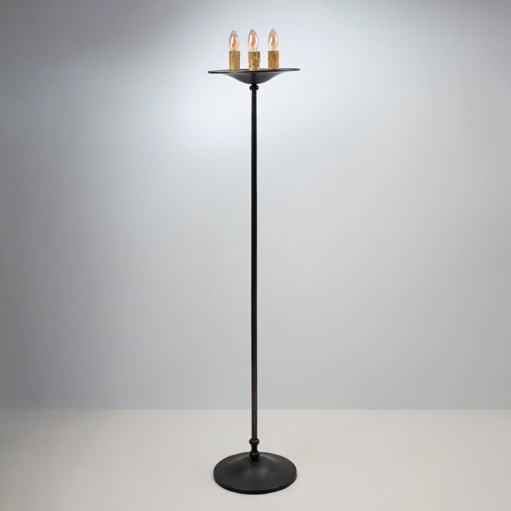Lampadaire à 3 ampoules en fer battu et fer forgé