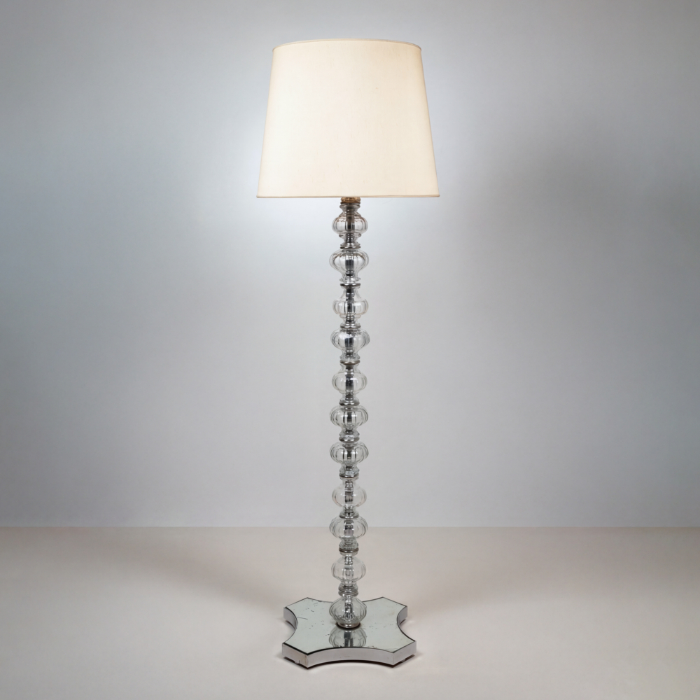 Lampadaire en crystal et métal chromé avec base en verre miroité