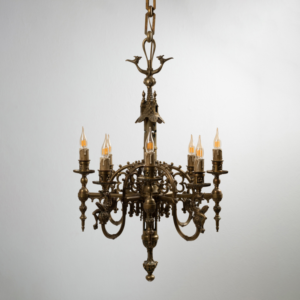Lustre en bronze doré de style néo-gothique