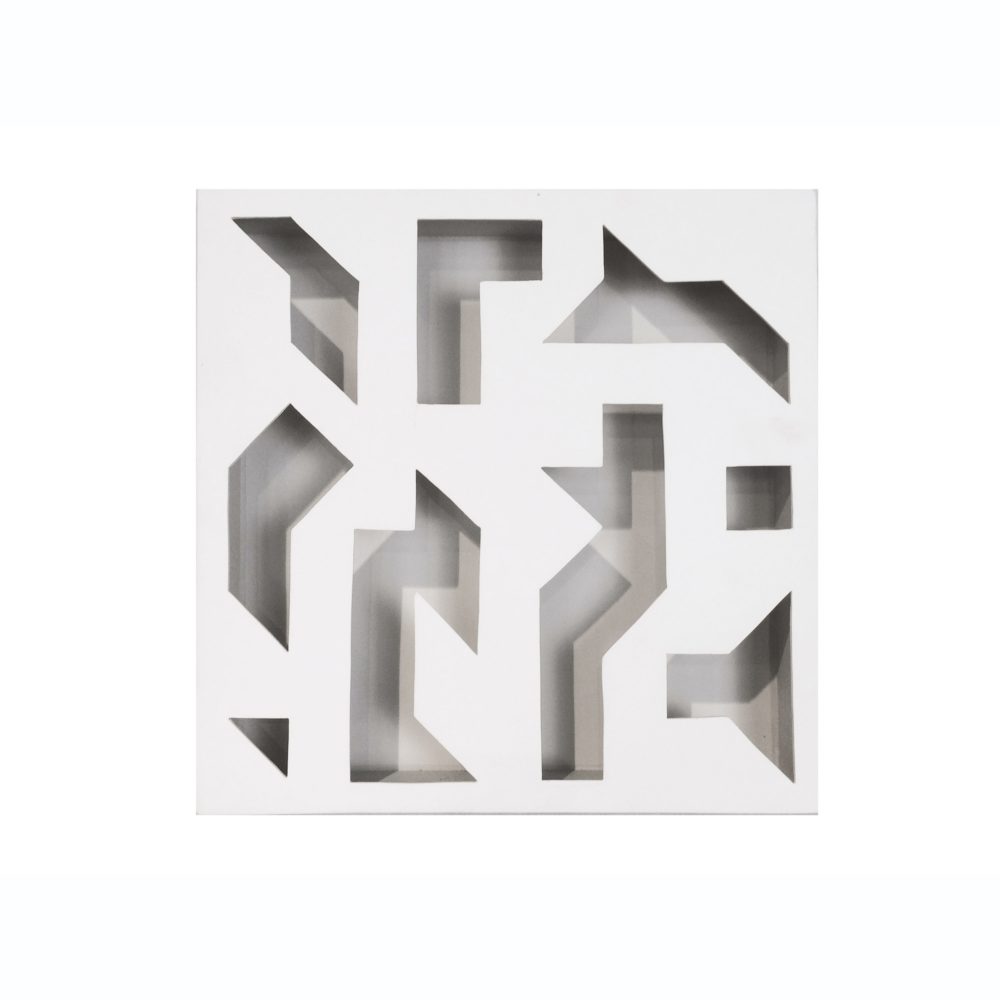 Sans titre Boite-tableau en bois peint blanc Pièce unique Signé et daté au revers « Cavell 69 »
