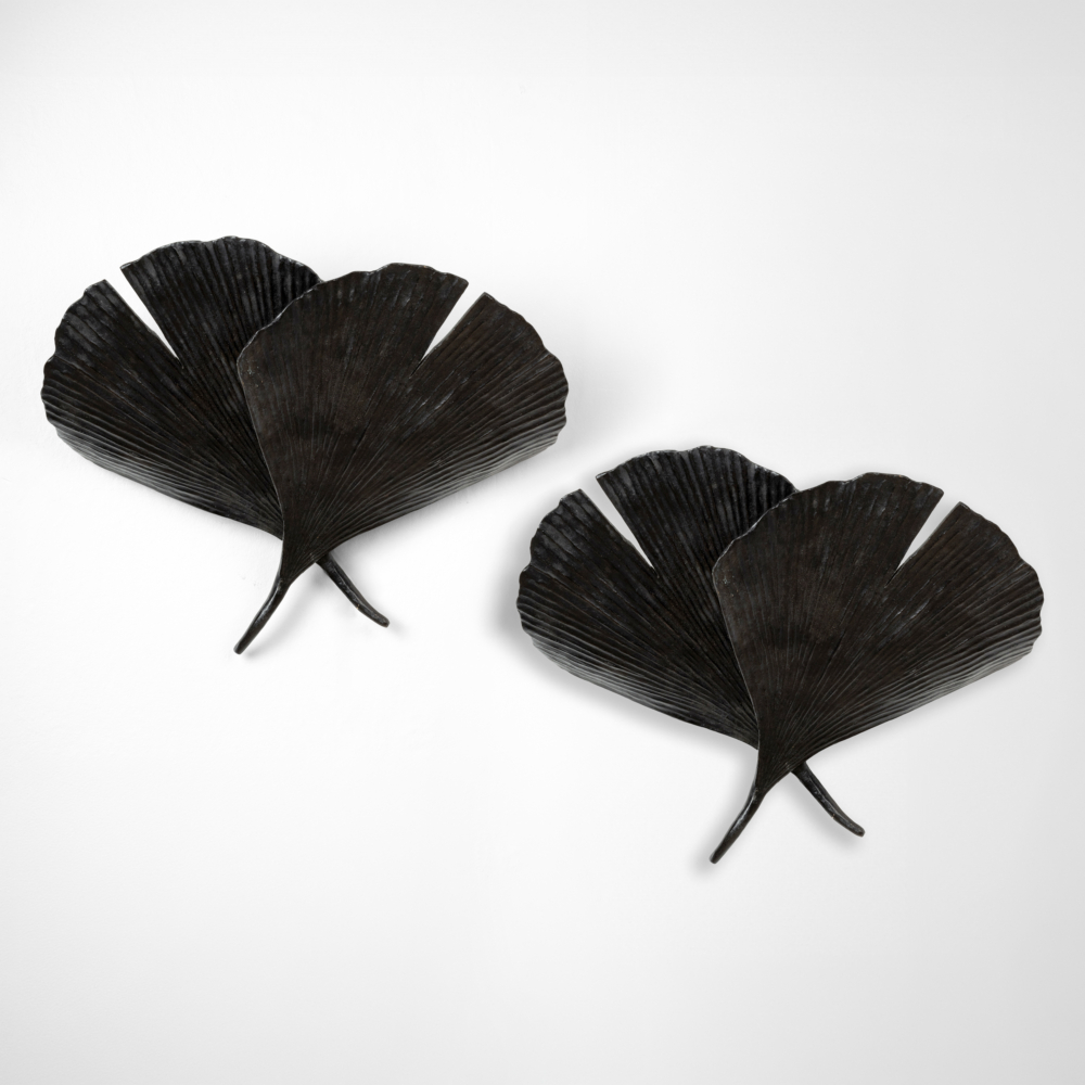Paire d’appliques « Ginkgo » en bronze patiné noir