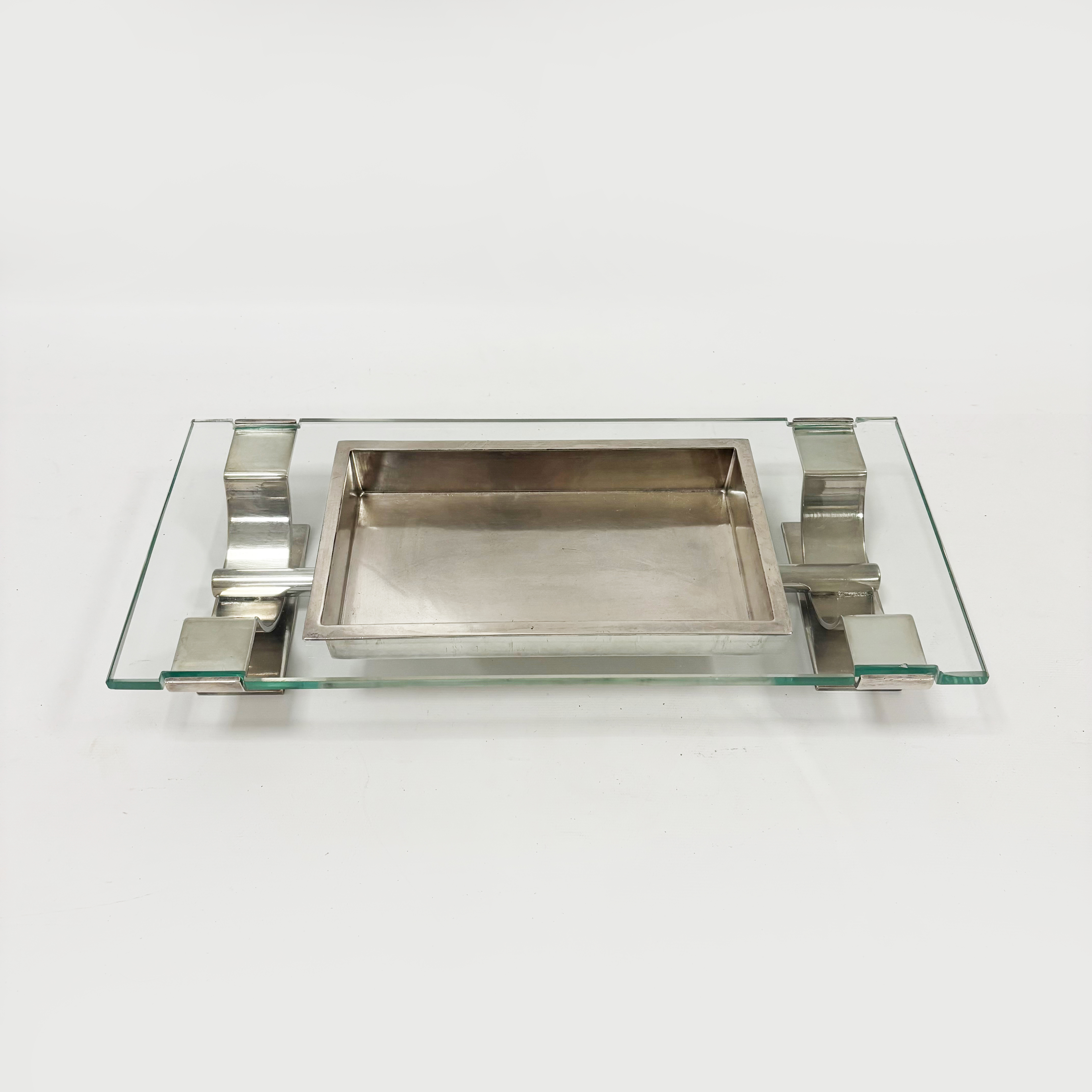 Centre de table en métal argenté et verre Production Gallia – Christofle Poinçon d’orfèvre et numéro du modèle 0420