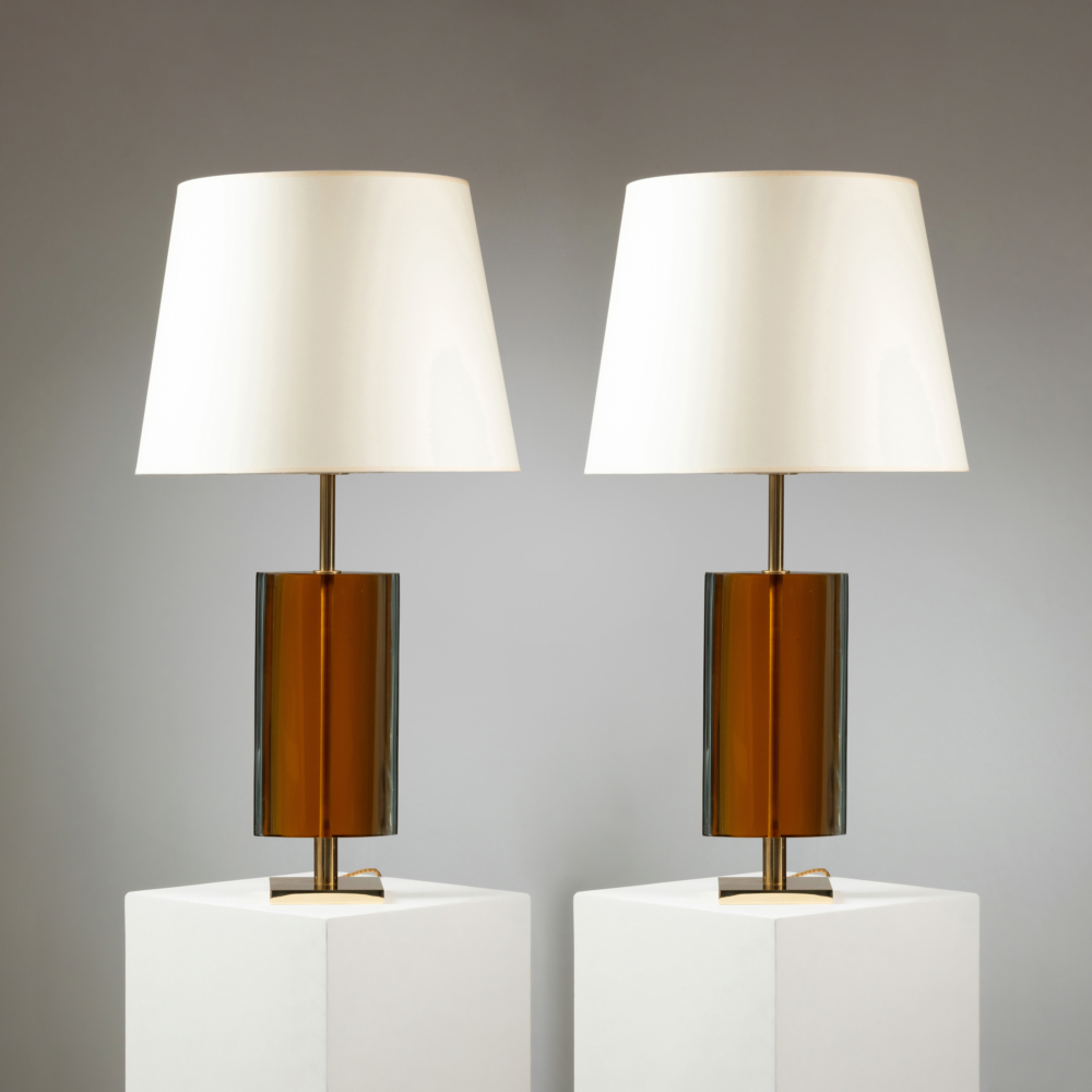 Paire de lampes en verre ambre et en laiton poli