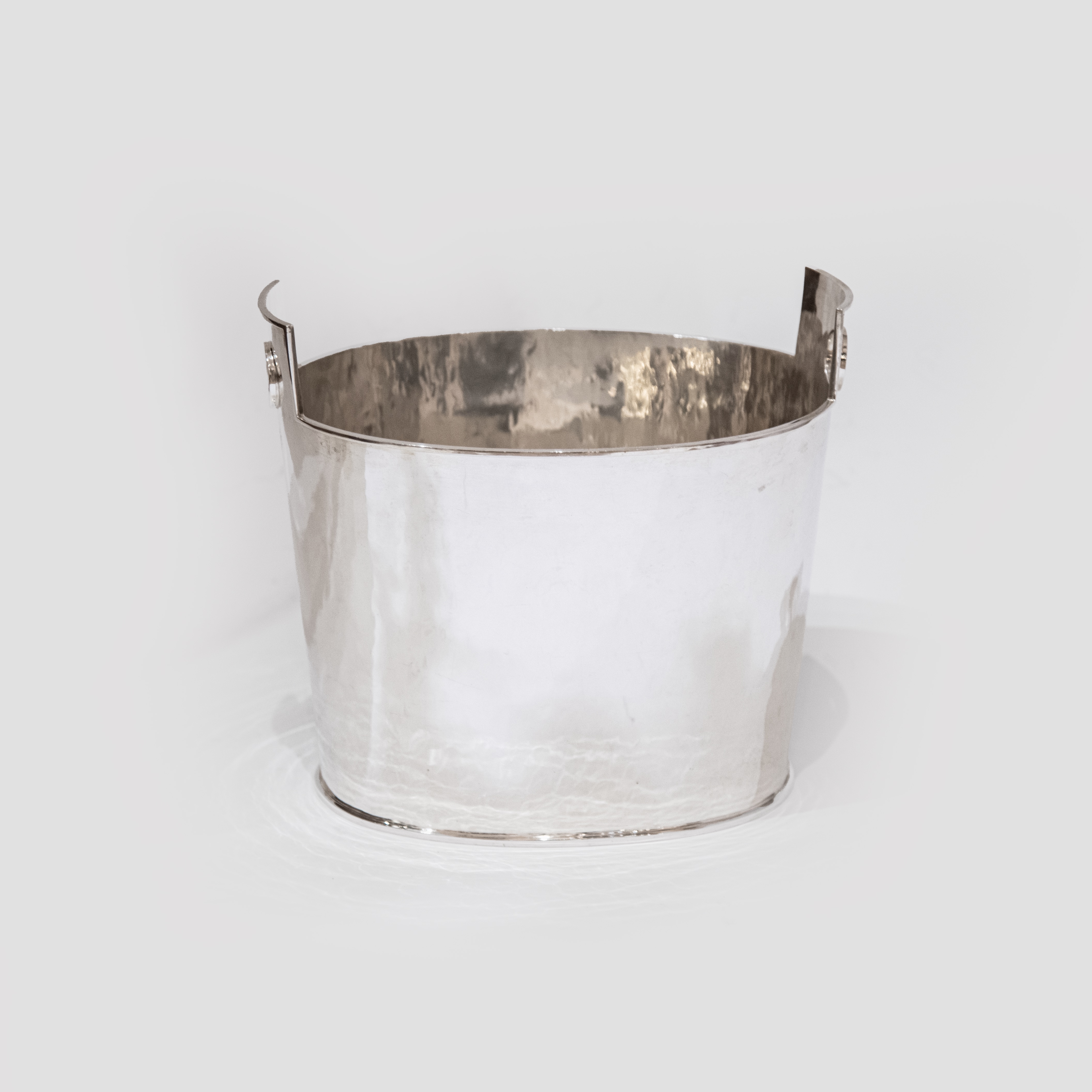 Seau à champagne en argent massif Poinçon de maître et inscription gravée « lav. a mano » (« réalisé à la main »)