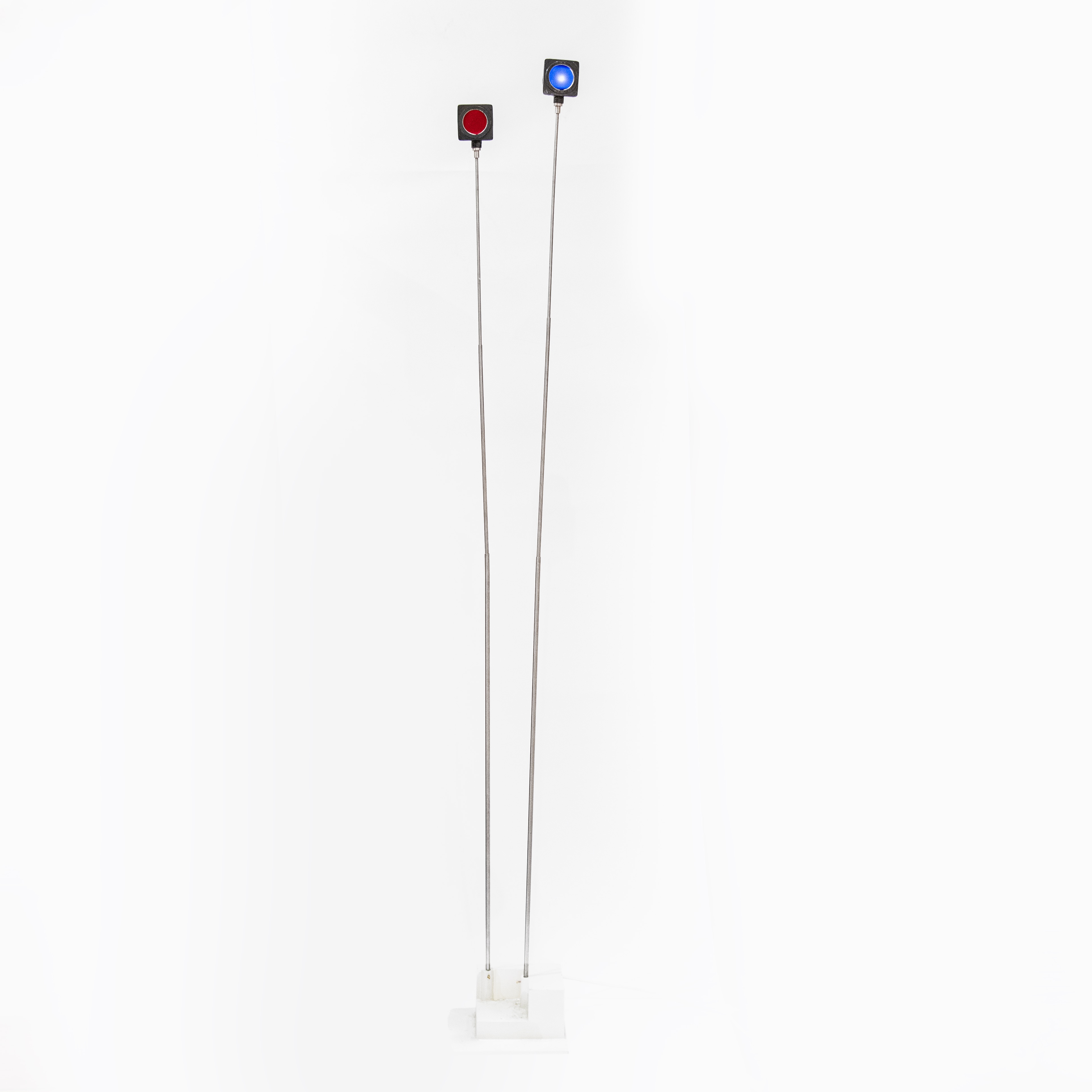 Double signal lumineux en aluminium, inox, plexiglas teinté et moteur électrique