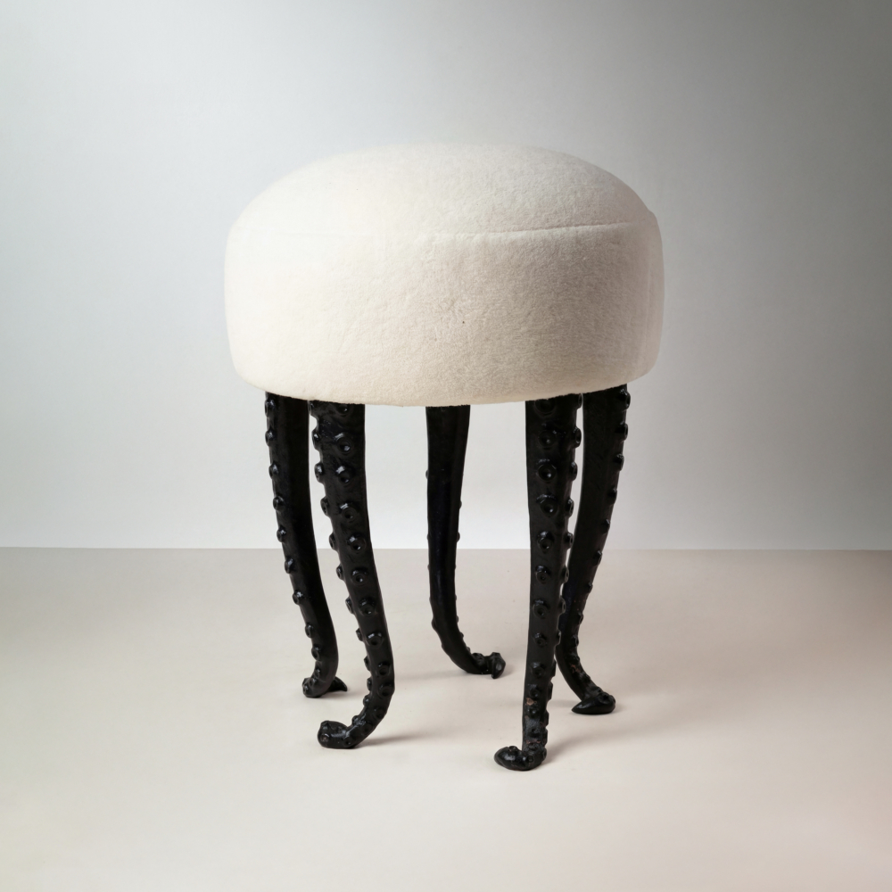 Pieds en bronze patiné noir, assise recouverte de velours de mohair Teddy de la maison Pierre Frey Edition limitée de 50 exemplaires Signé et numéroté