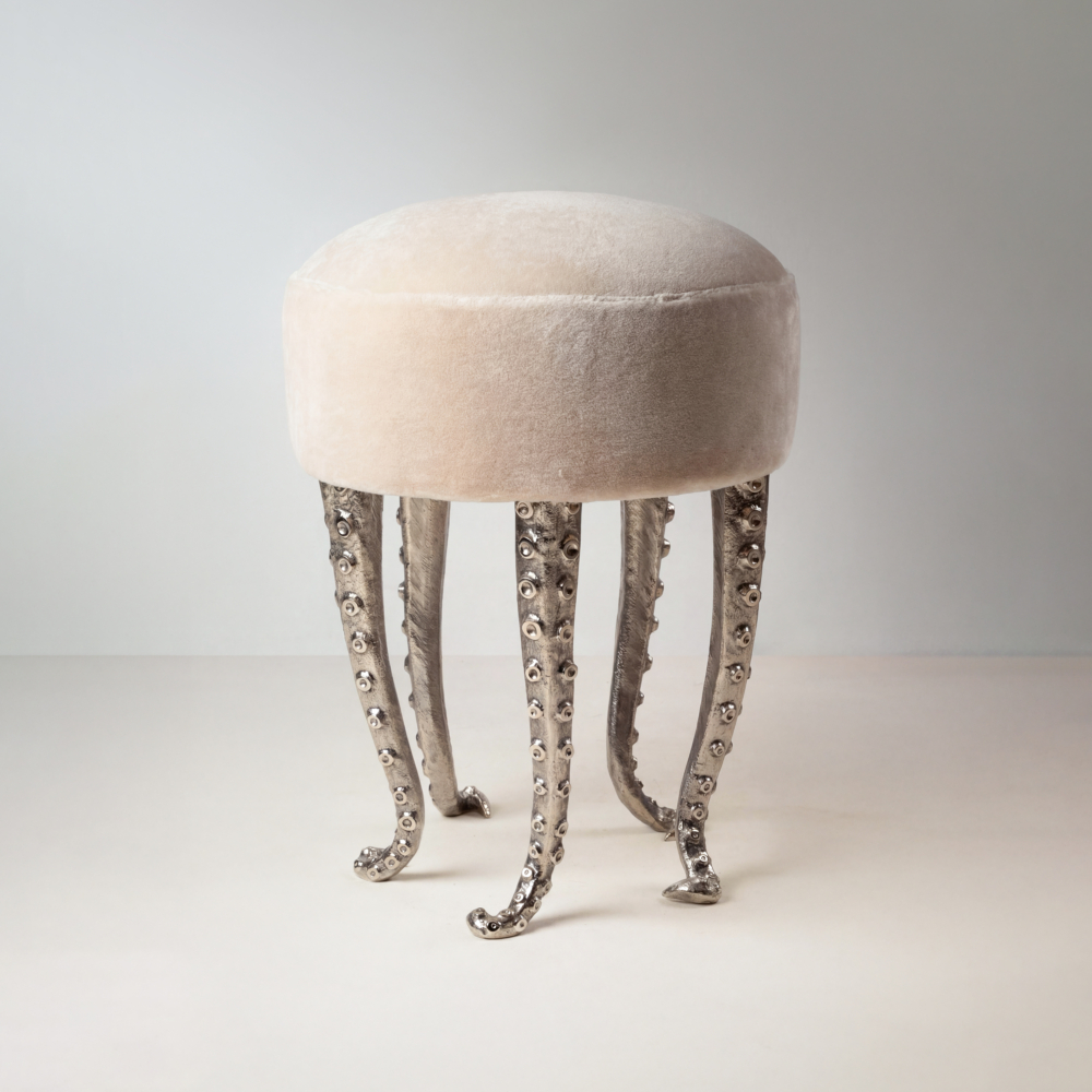 Pieds en bronze patiné argenté, assise recouverte de mohair de velours de mohair Teddy de la maison Pierre Frey