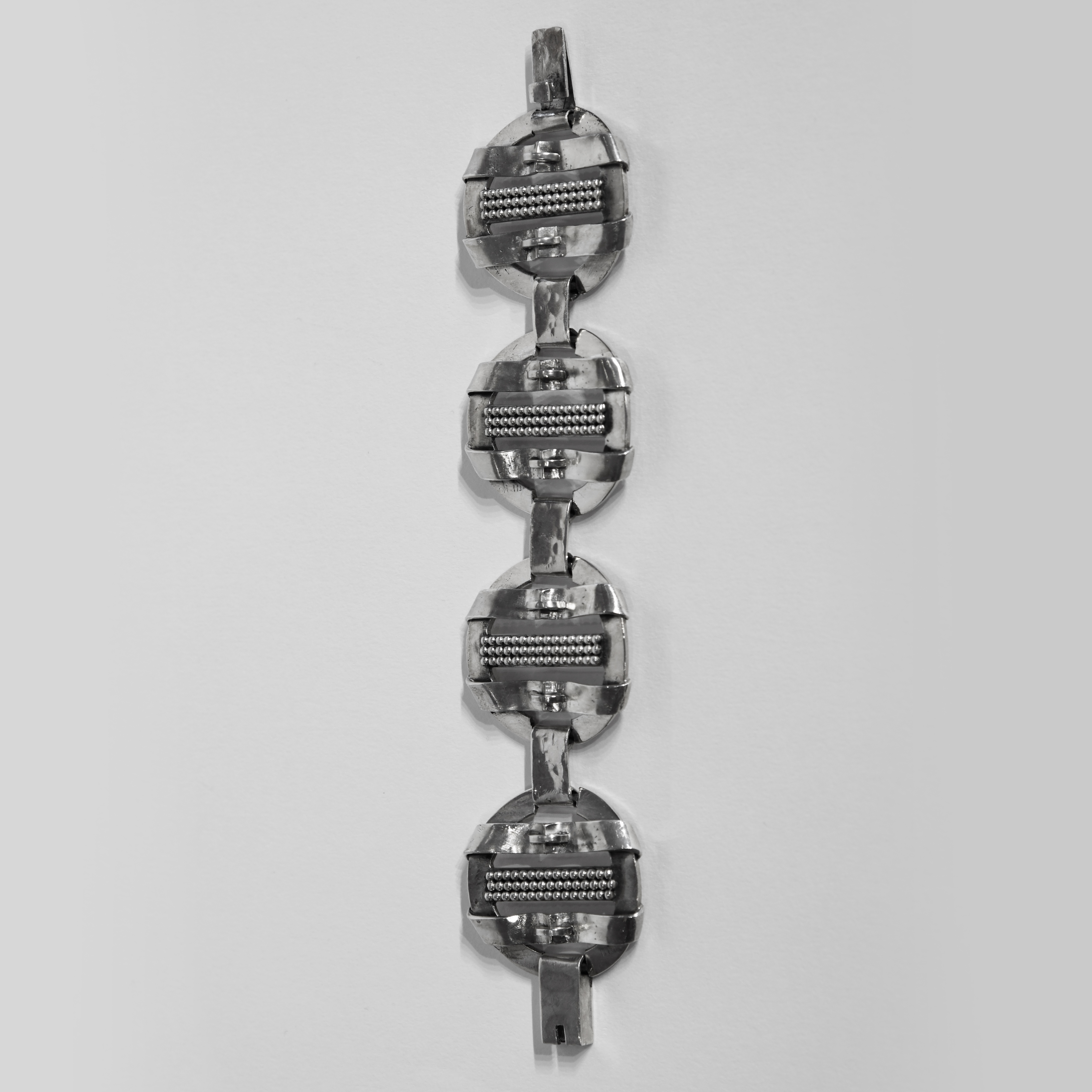 Geometric patterns silver bracelet Signature. Maker’s hallmark. Silver hallmark.