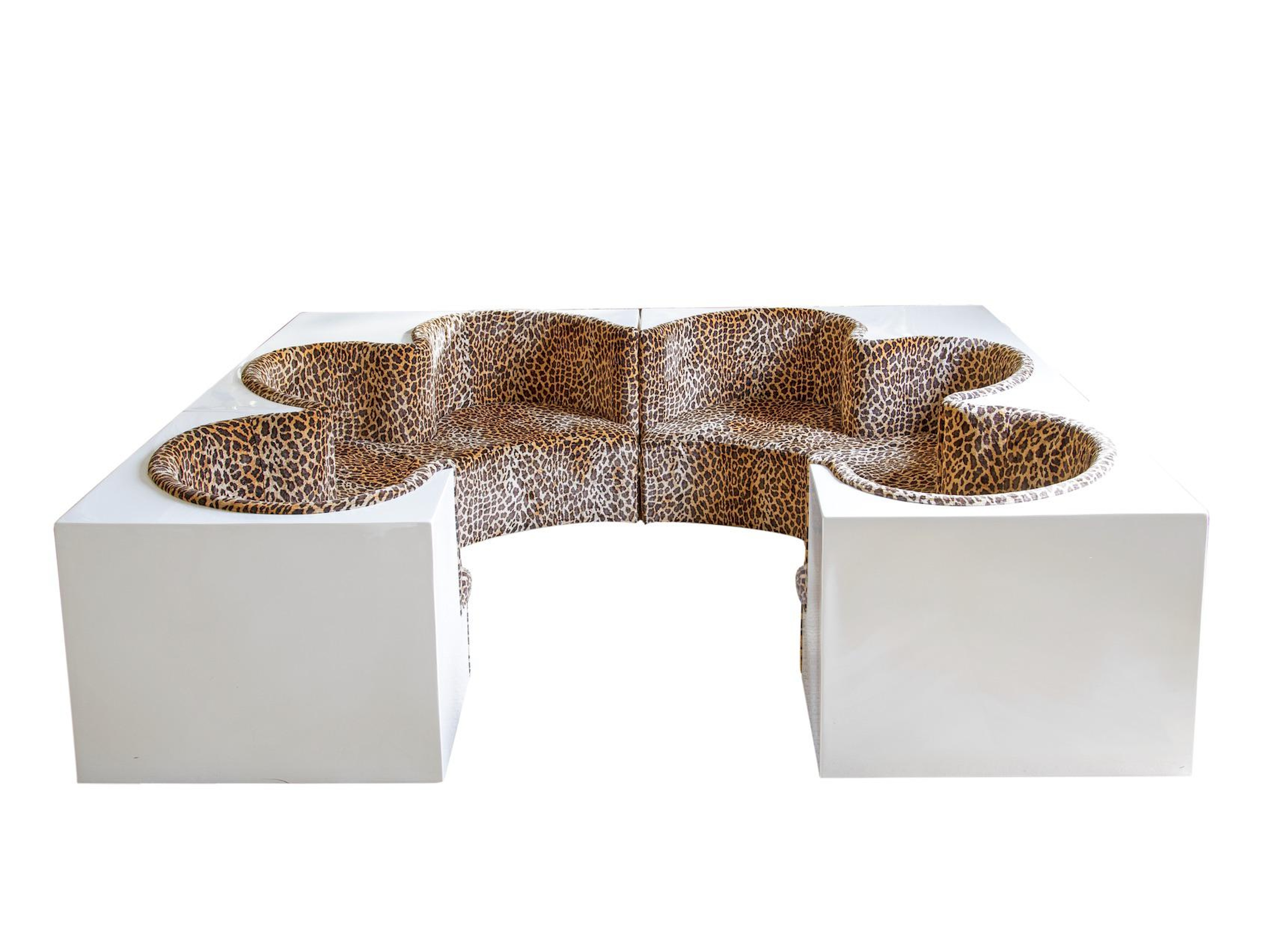 Modular sofa in fiberglass-reinforced polyester, polyurethane and textile