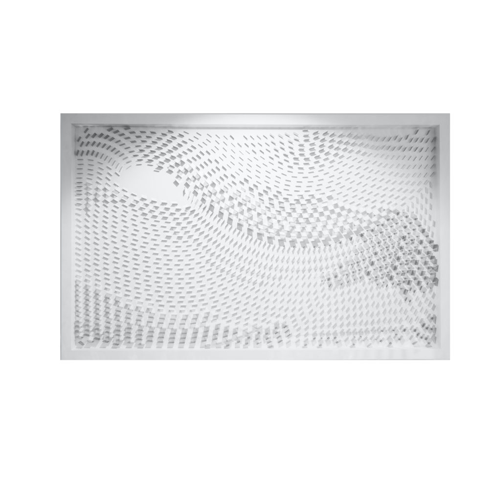 Untitled Steel blades inlayed on a white lacquered wood panel Unique piece Dated and signed on the back