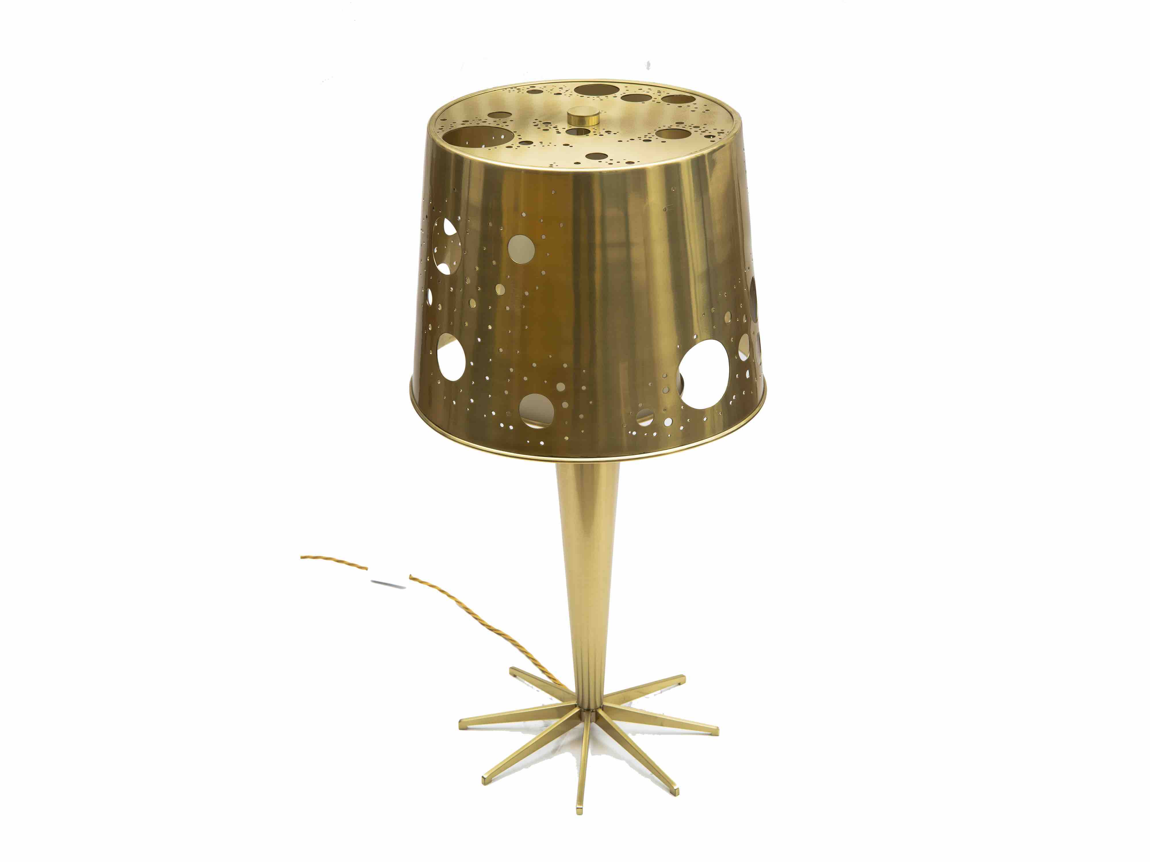 Inside lampshade made with opal glass, outside lampshade made with brass Signed “R.G. Rida”
