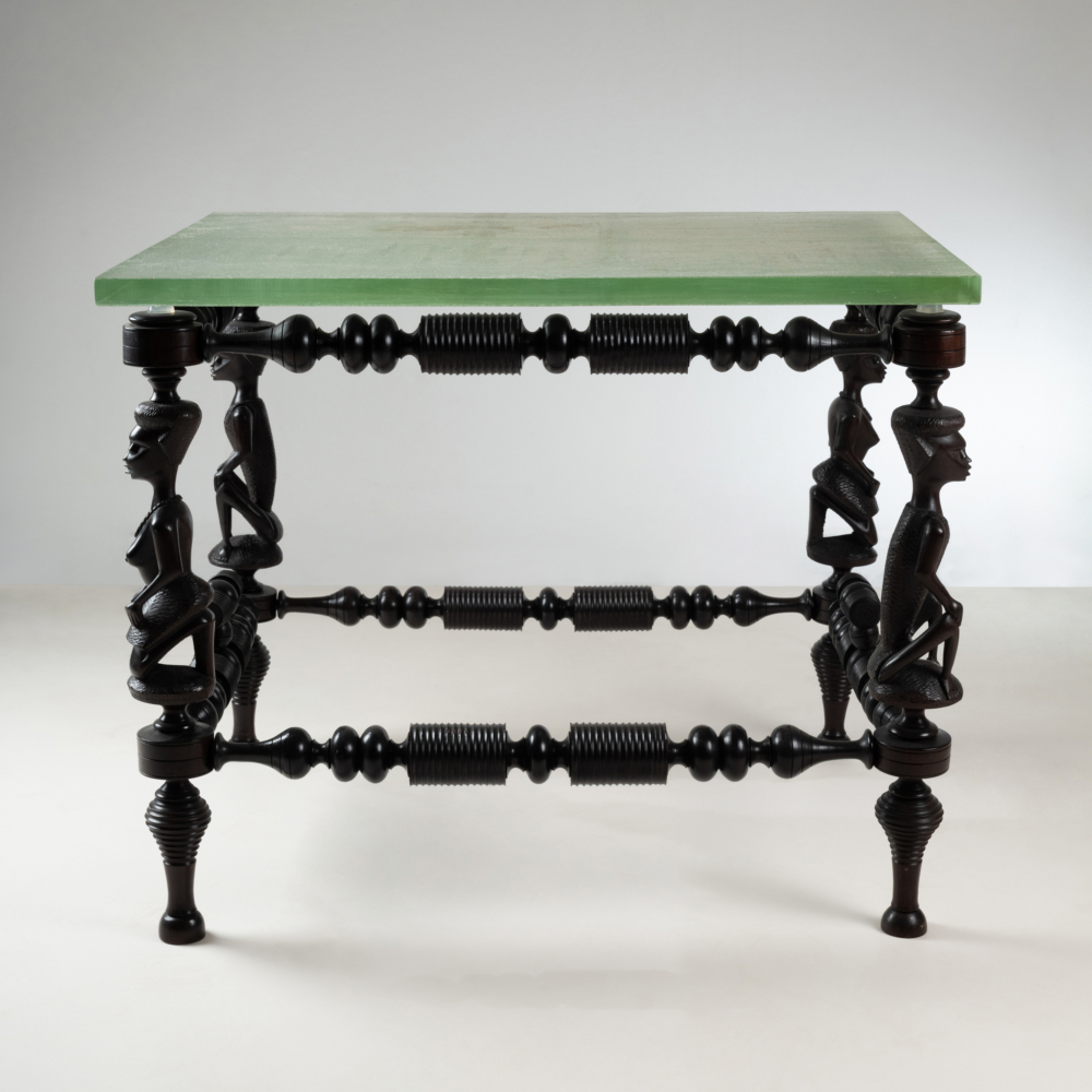 Africanist dark pear tree structure and Saint-Gobain glass top
