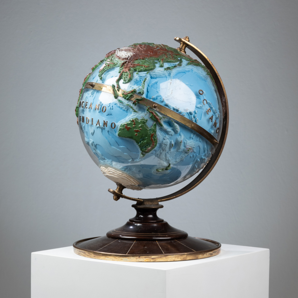 Cam Mantova edition world map made of rosewood, brass and plexiglass. Following a Gio Ponti drawing